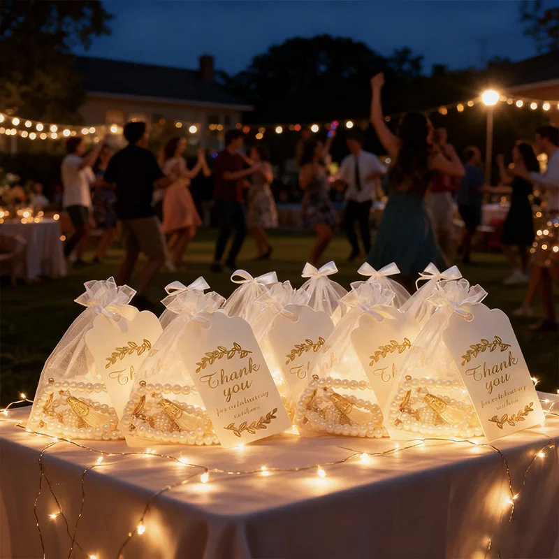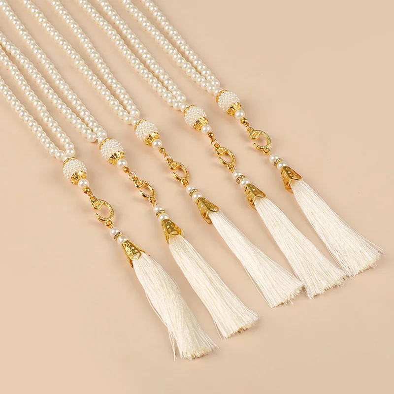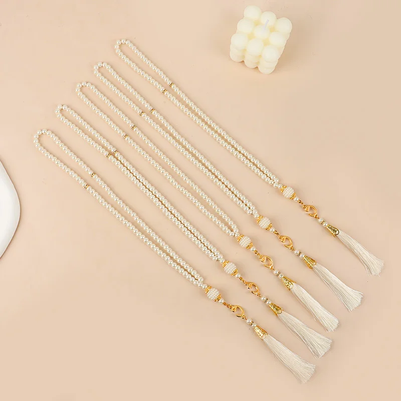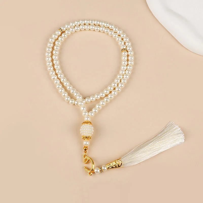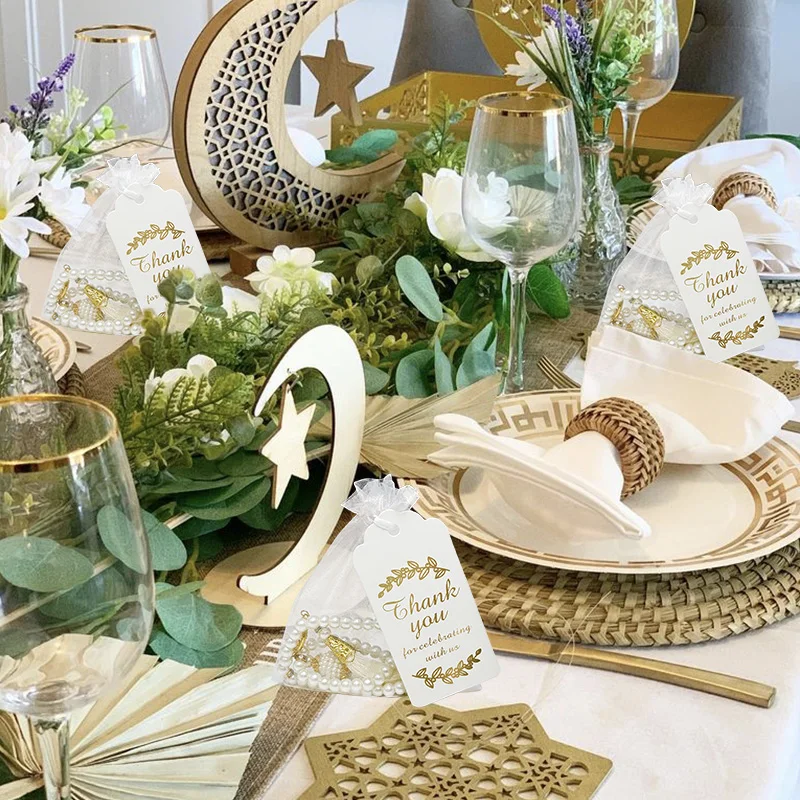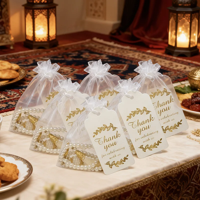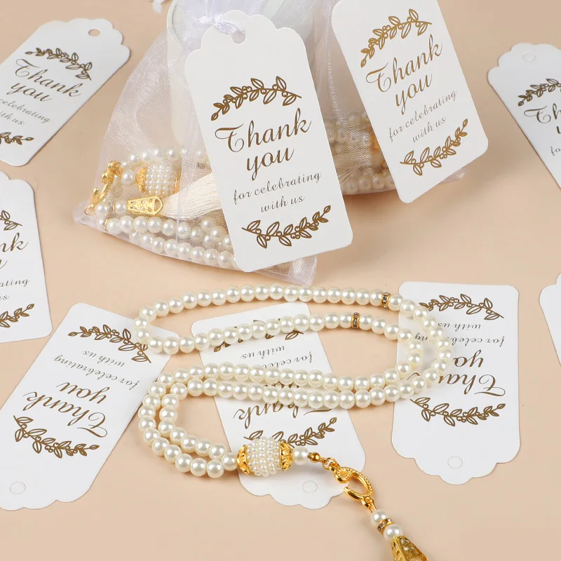 15Pcs Glass Pearl Muslim Prayer Beads Bracelet with Thank You Card Organza Bags Eid Mubarak Ramadan Gift Islamic Home Decoration