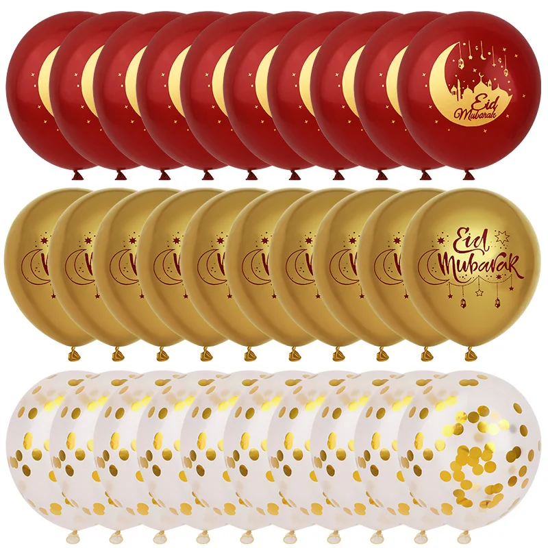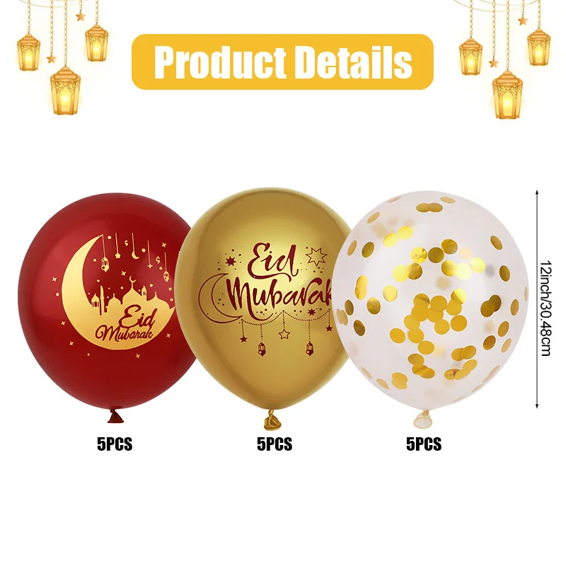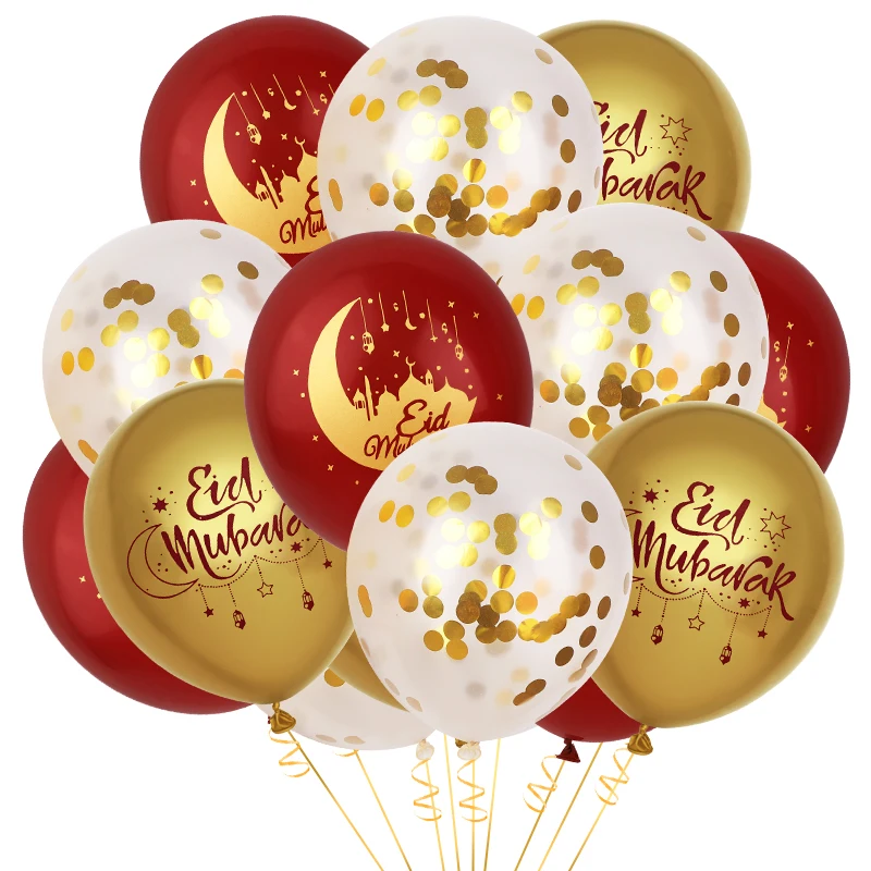Vier Eid al-Fitr of Eid al-Adha in stijl met deze prachtige set van 15 ballonnen in de kleuren goud, wit en rood. Ideaal om je huis, woonkamer of feestlocatie feestelijk aan te kleden tijdens Eid.
