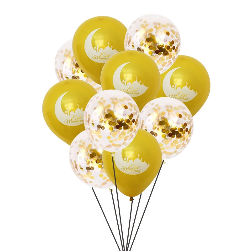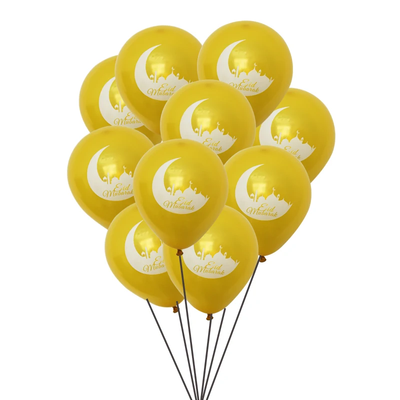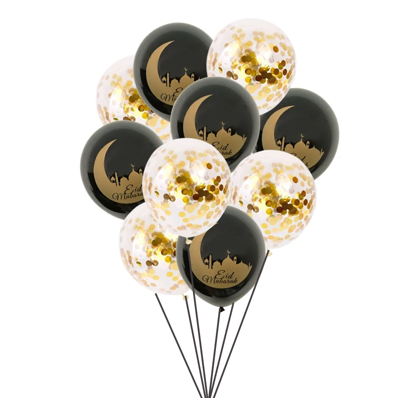Vier Eid al-Fitr en Eid al-Adha in stijl met deze elegante Eid ballonnen set van 10 stuks in de kleuren zwart, goud en wit. De combinatie van diep zwart, luxe goud en fris wit zorgt voor een moderne en chique uitstraling, perfect voor een sfeervolle Eid-decoratie.
