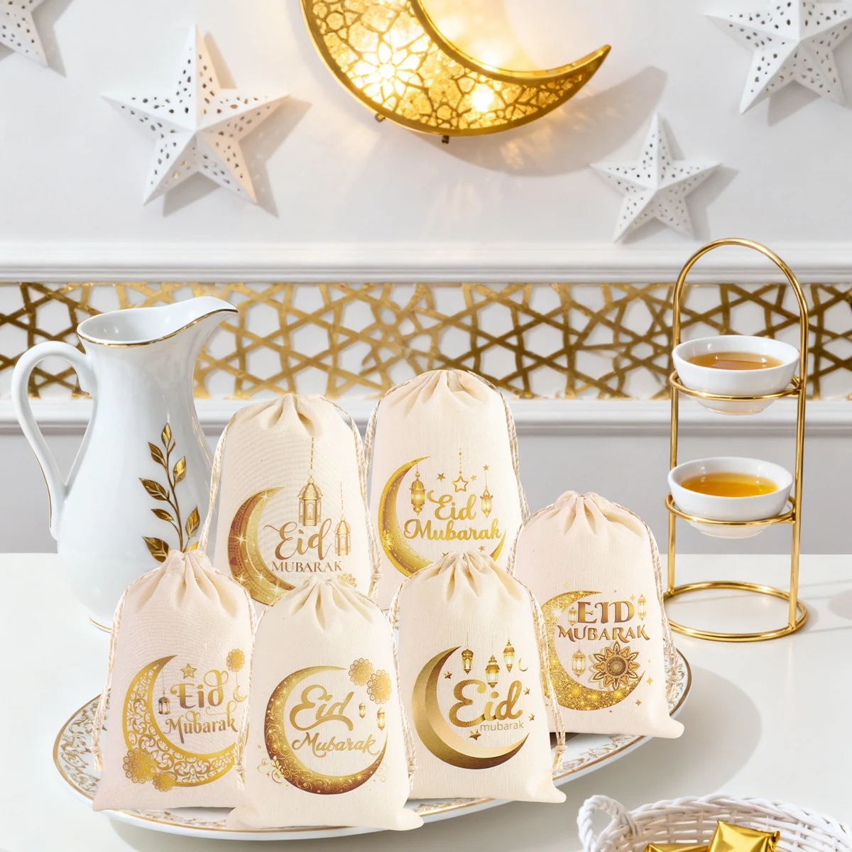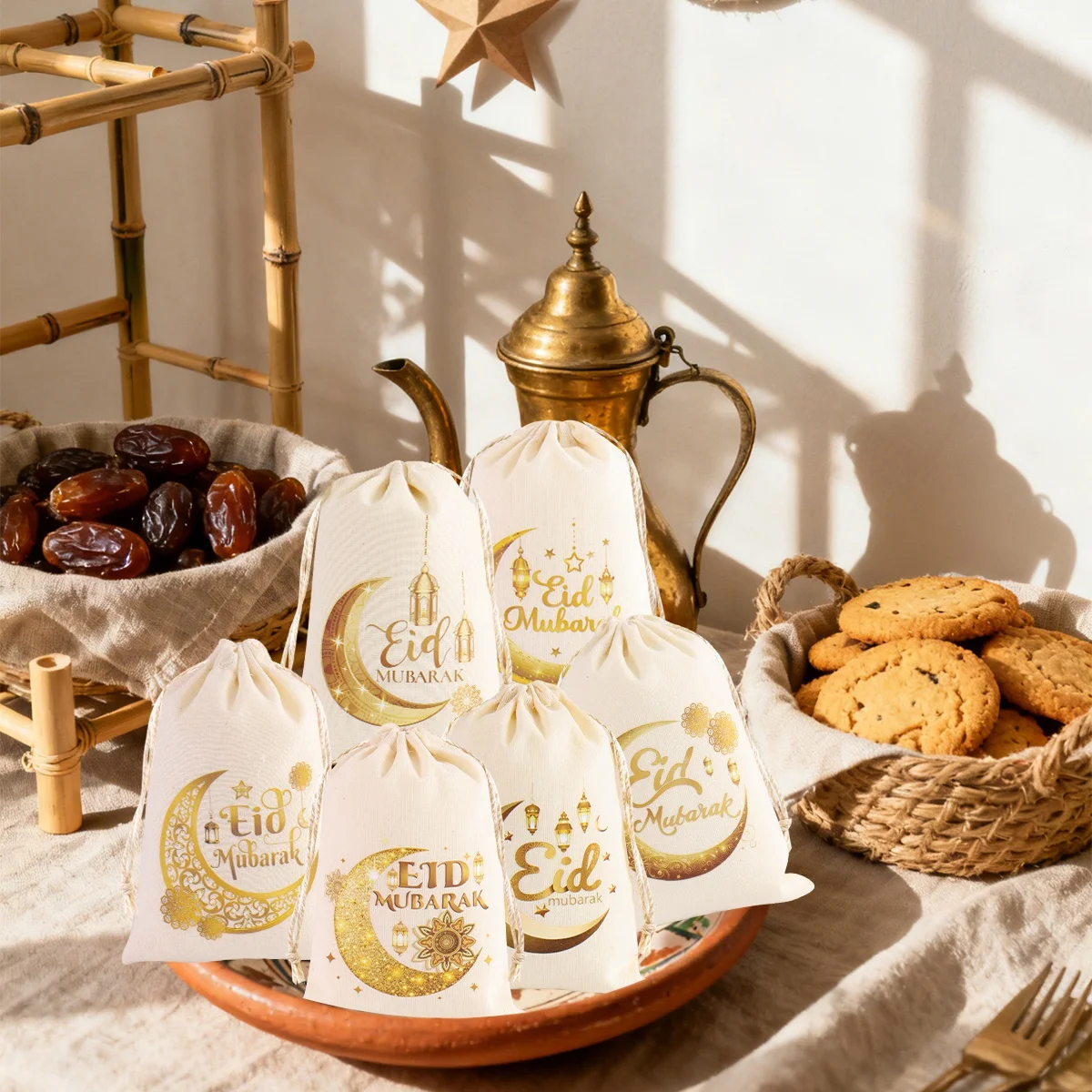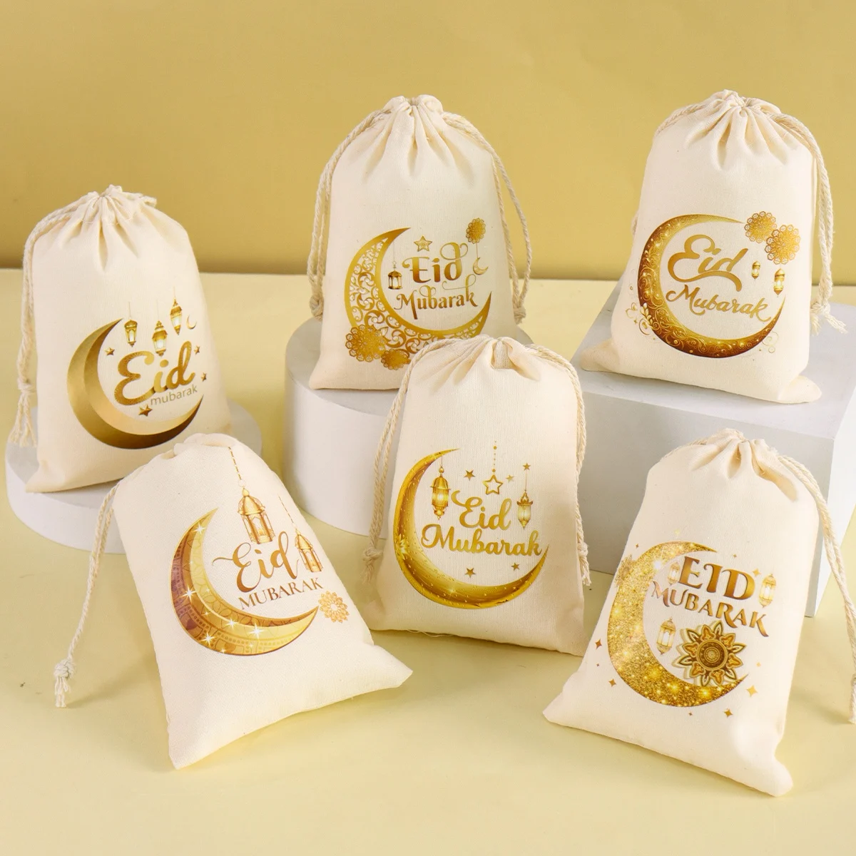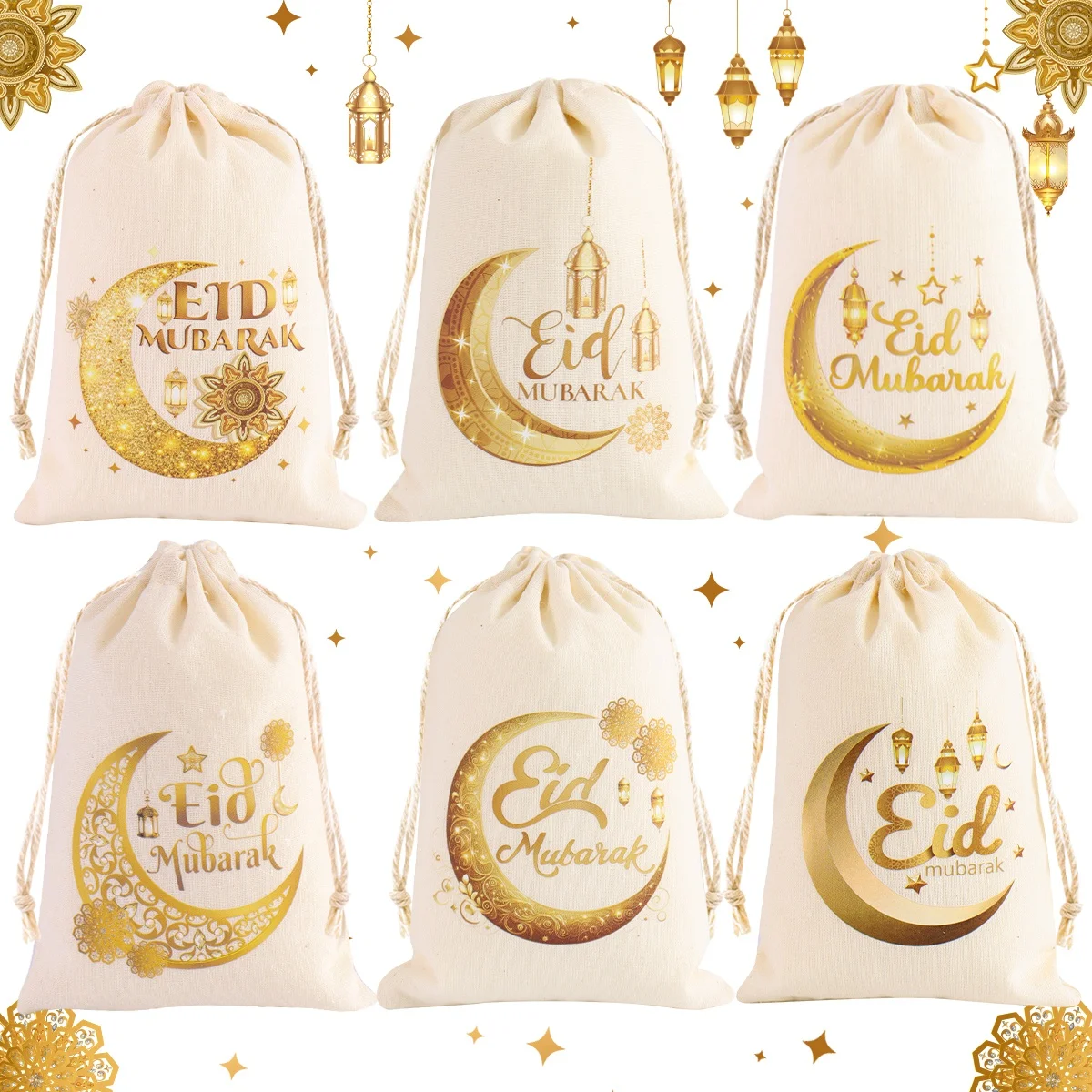 6 stuks Eid Mubarak Cadeauzakjes – Linnen Goodie Bags