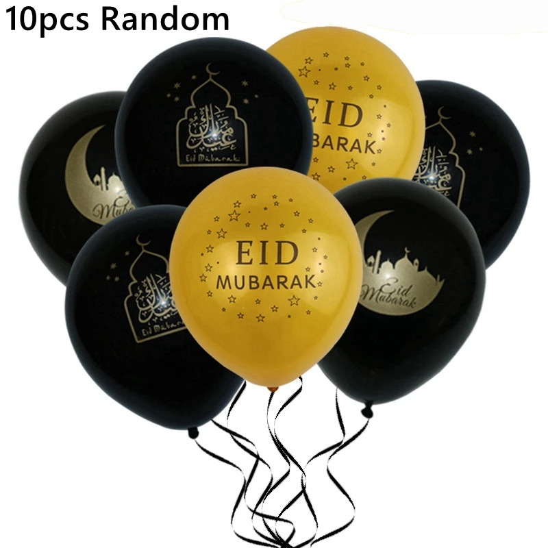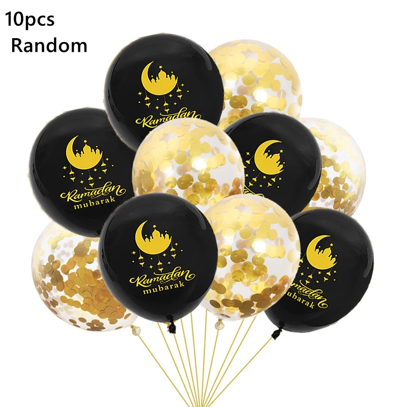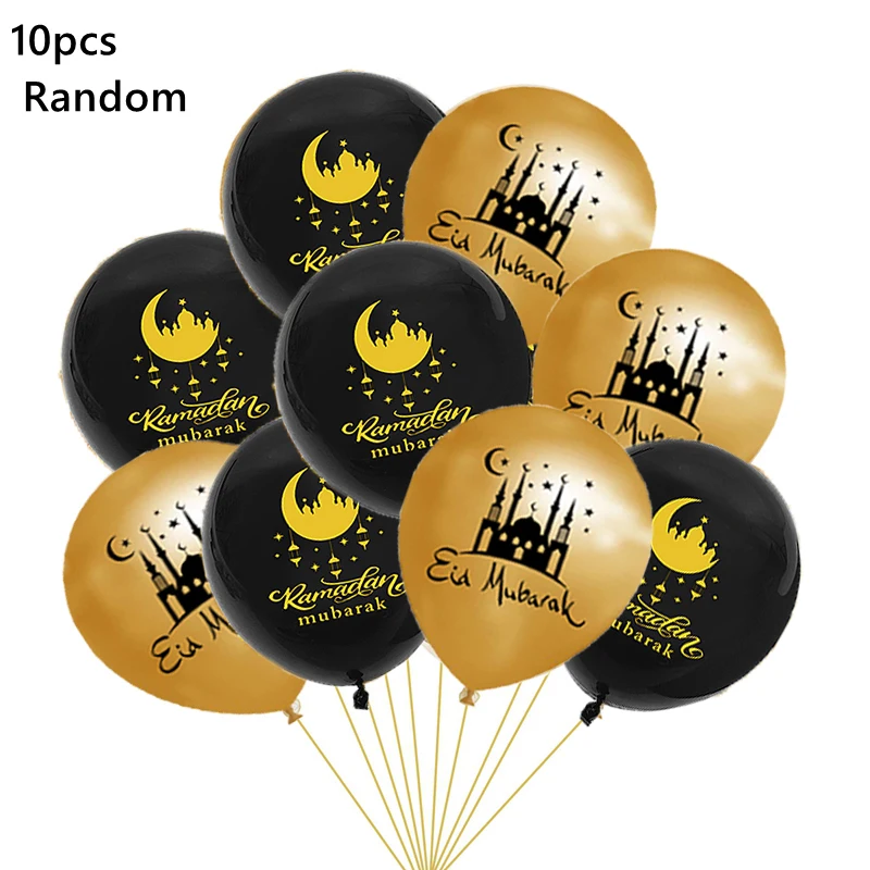 Vier Eid al-Fitr en Eid al-Adha in stijl met deze elegante Eid ballonnen set van 10 stuks in de kleuren zwart, goud en wit. De combinatie van diep zwart, luxe goud en fris wit zorgt voor een moderne en chique uitstraling, perfect voor een sfeervolle Eid-decoratie.